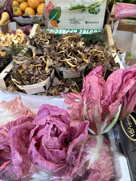But back here in the twenty-first century and our abundant, seemingly boundless food, I took a day trip yesterday to Lille. A lovely, charming little city near the Belgian border on the recommendation of my new pal Jane Bertch, who also has a Substack you should read. Lille has an old quarter that is beautiful and full of little shops and restaurants serving Flemish food, like Belgian boeuf carbonnade, a beef, beer and onion stew and waterzooi of chicken, a creamy braised chicken dish enriched with eggs. And also horse and tongue were on many menus, but not horse tongue, just beef tongue. I did not partake of either of those. I have eaten horse, as sashimi in Tokyo years ago where it tasted like venison and iron, and smoked, thinly sliced deli tongue served cold with rye bread and mustard was a Saturday lunch staple at my grandparent’s house after synagogue services. I also love lamb’s tongues, which are small and velvety-textured, but you just can’t think too much about what they are when you’re eating them, especially if you are at all sentimental.